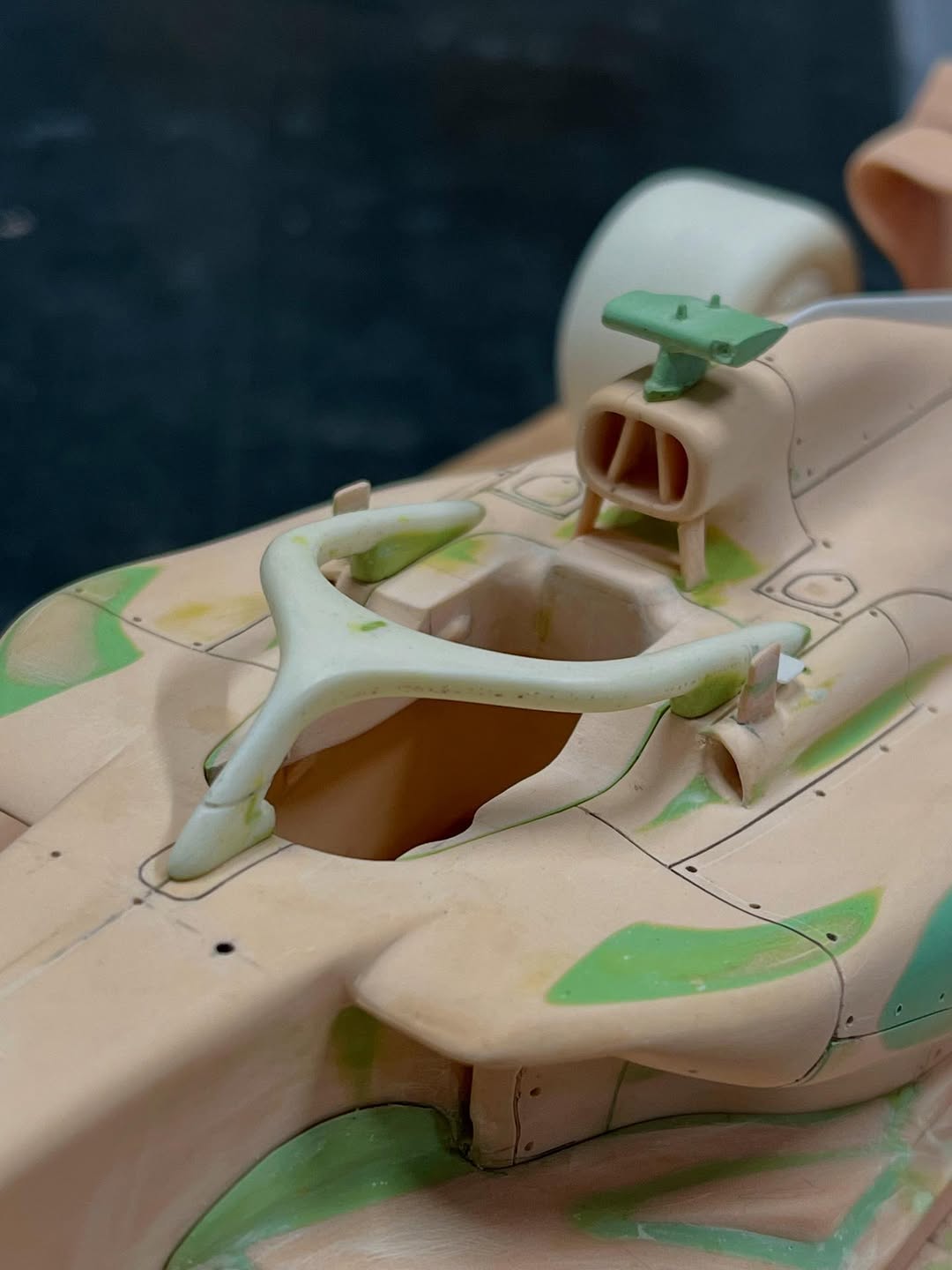 ボディ全体の形状出しです。このマシンはコックピットから後端にかけてのラインが幾つも重なって、面がどの面に繋がっていくのか把握するのが厄介なマシンです、正解がわかりません。今年のマシンはどのチームもそうなんでしょうかね。まだ詰めが甘いので修正を加えながら進めていきます。