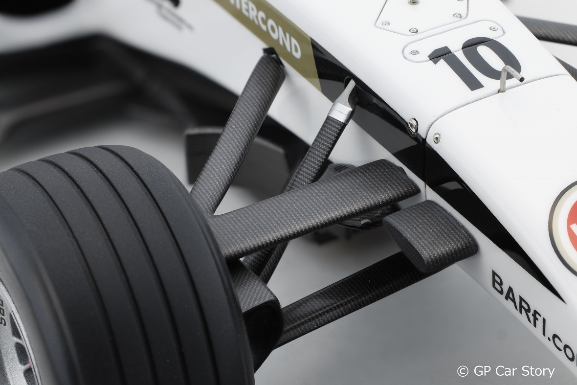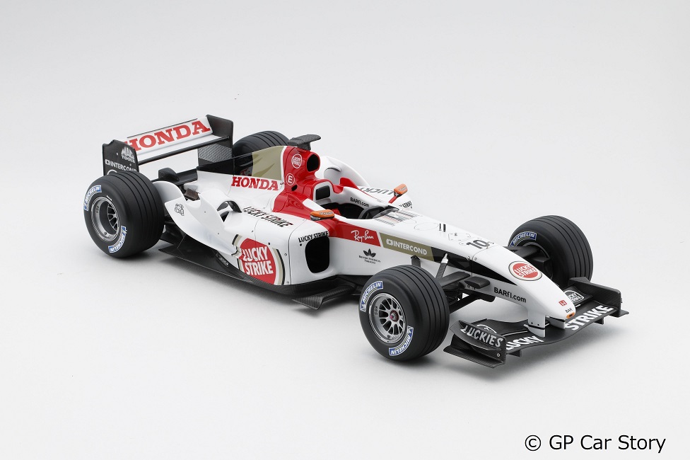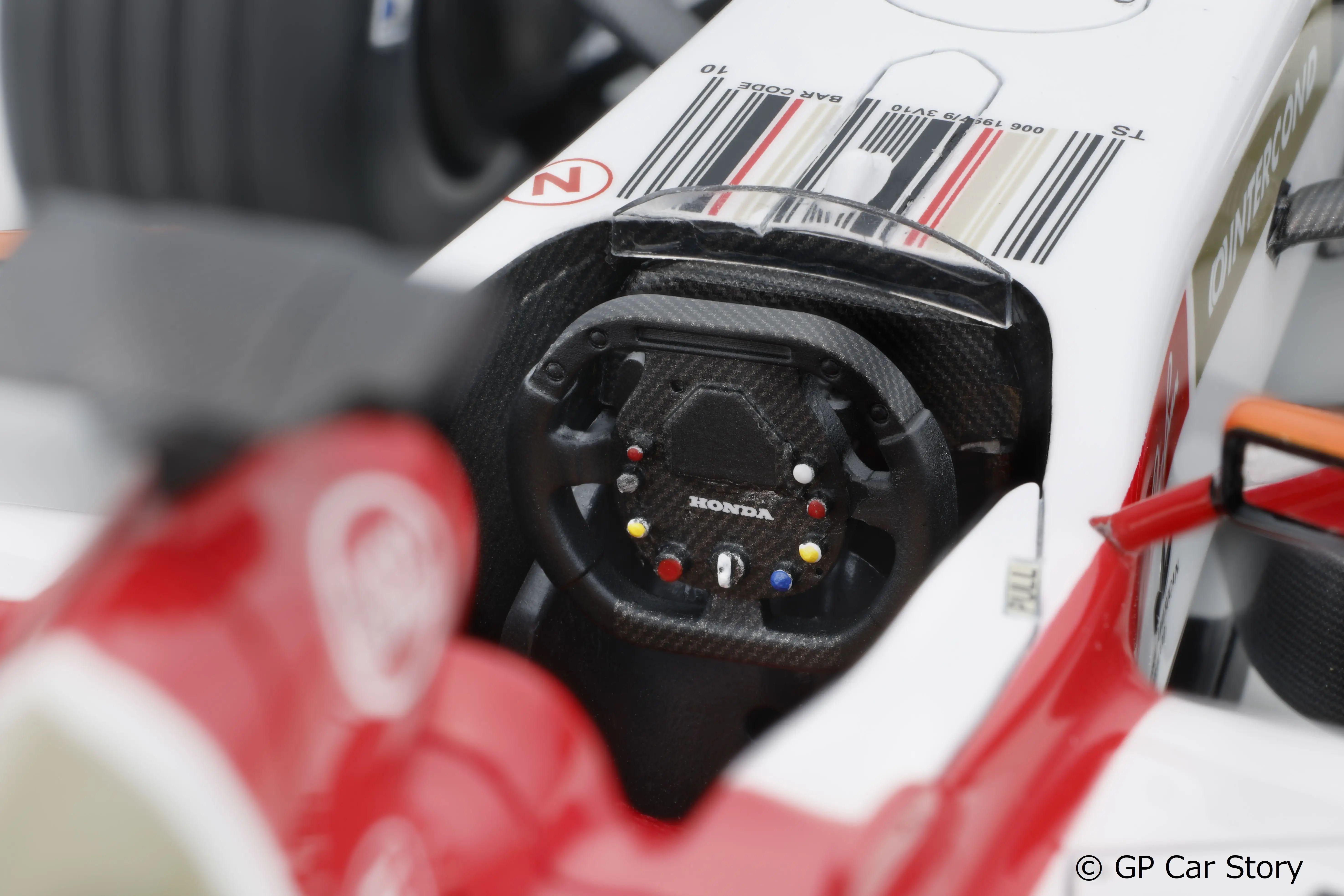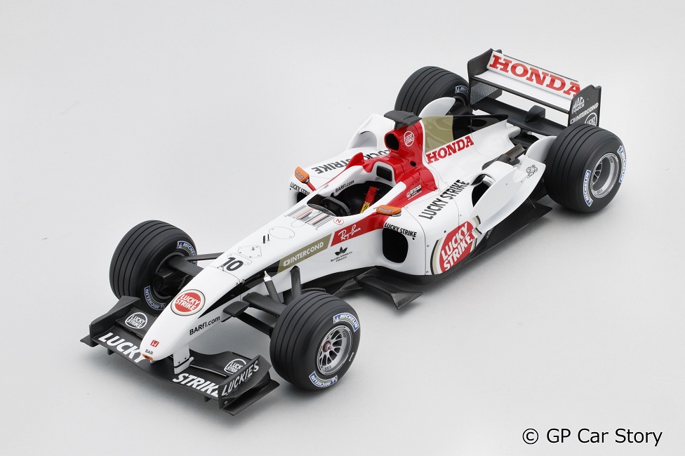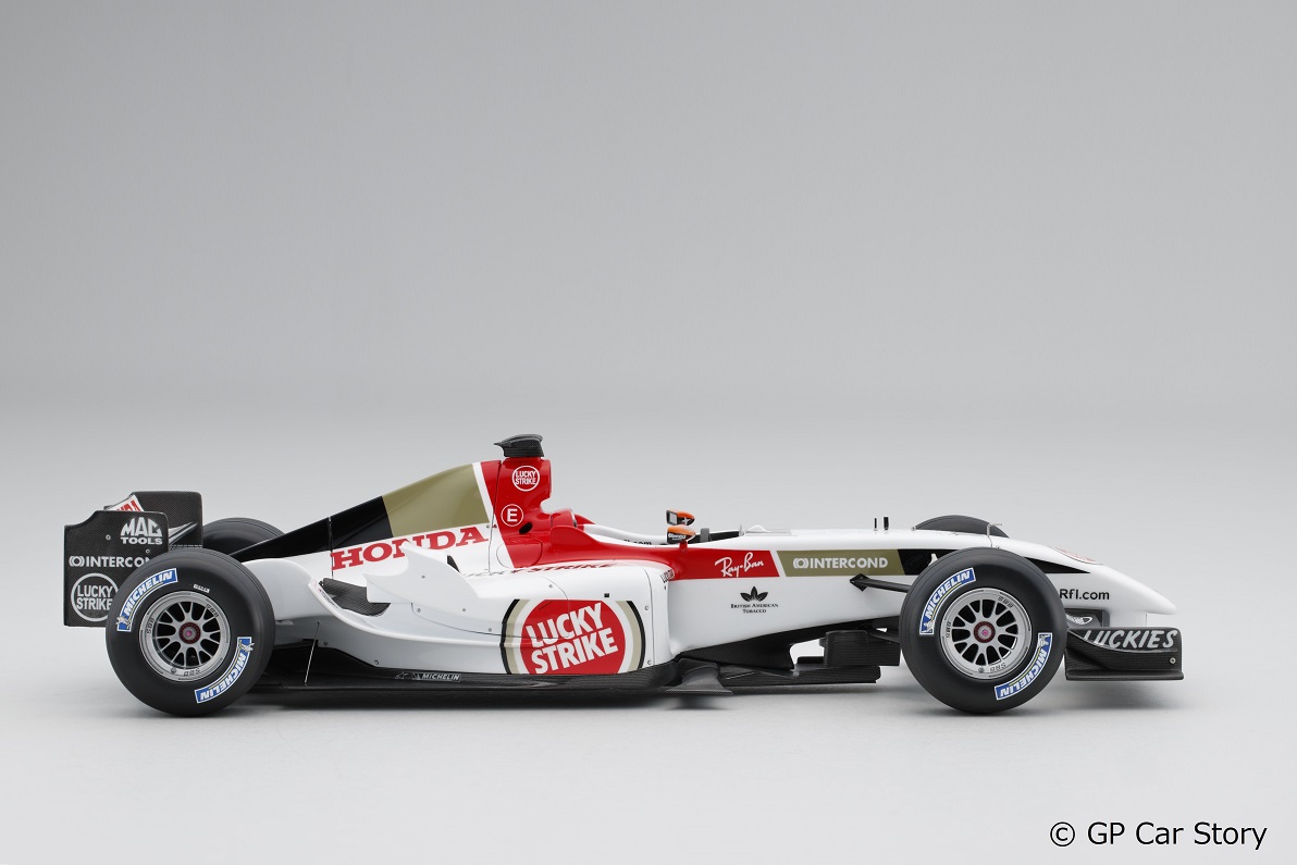 琢磨の初表彰台、アメリカGP仕様を目指して作りました。誌面でご紹介しました通り、昔作ったものの塗装を落としノーズ形状を改修して再塗装しています。ずっと気になっていたポイントでしたので、BAR006のお話を頂いた瞬間にレストア決定でした。やって良かったと思います。