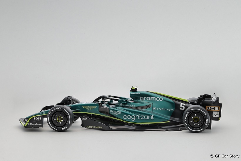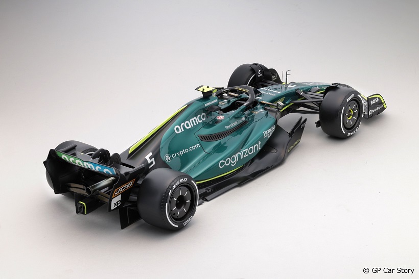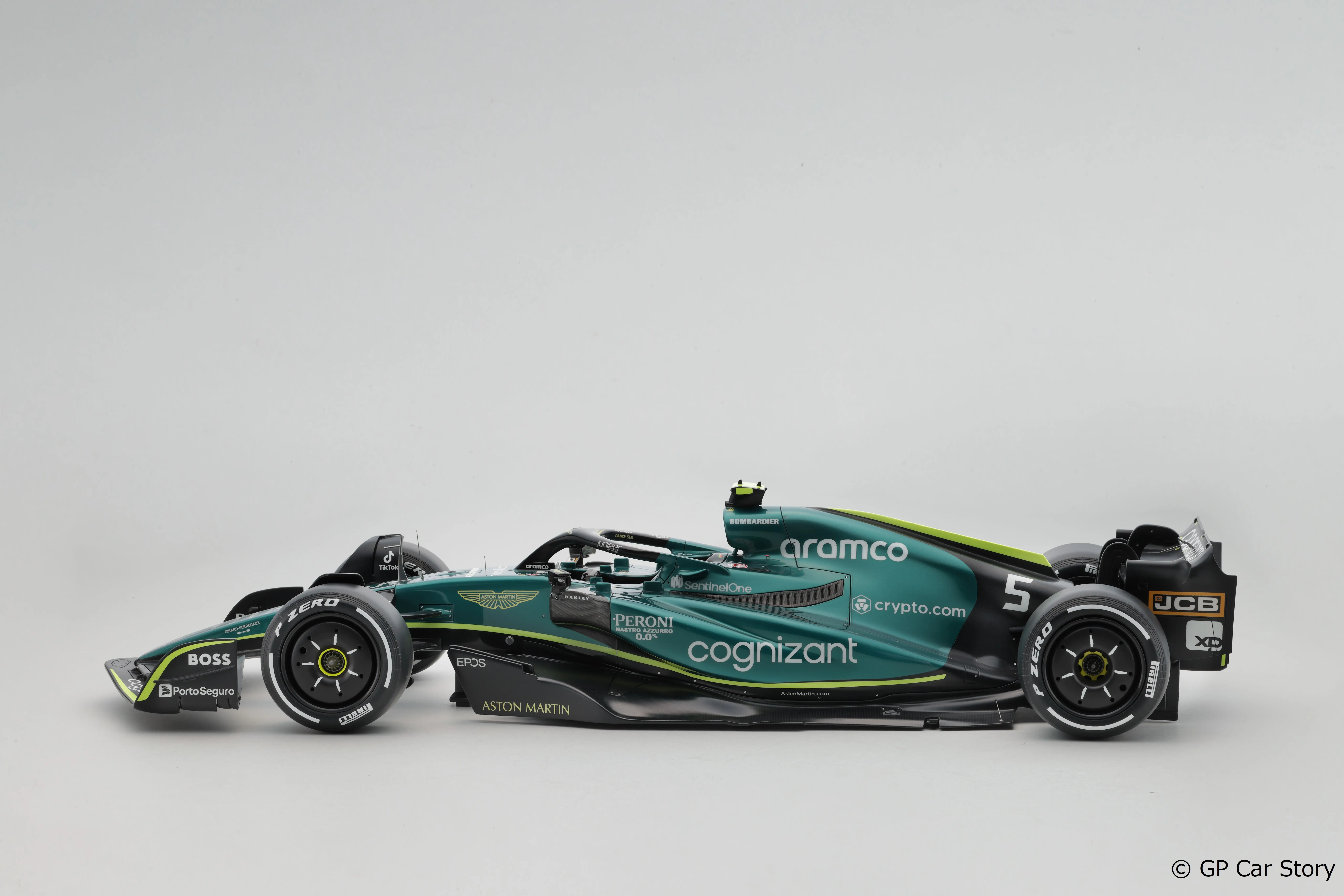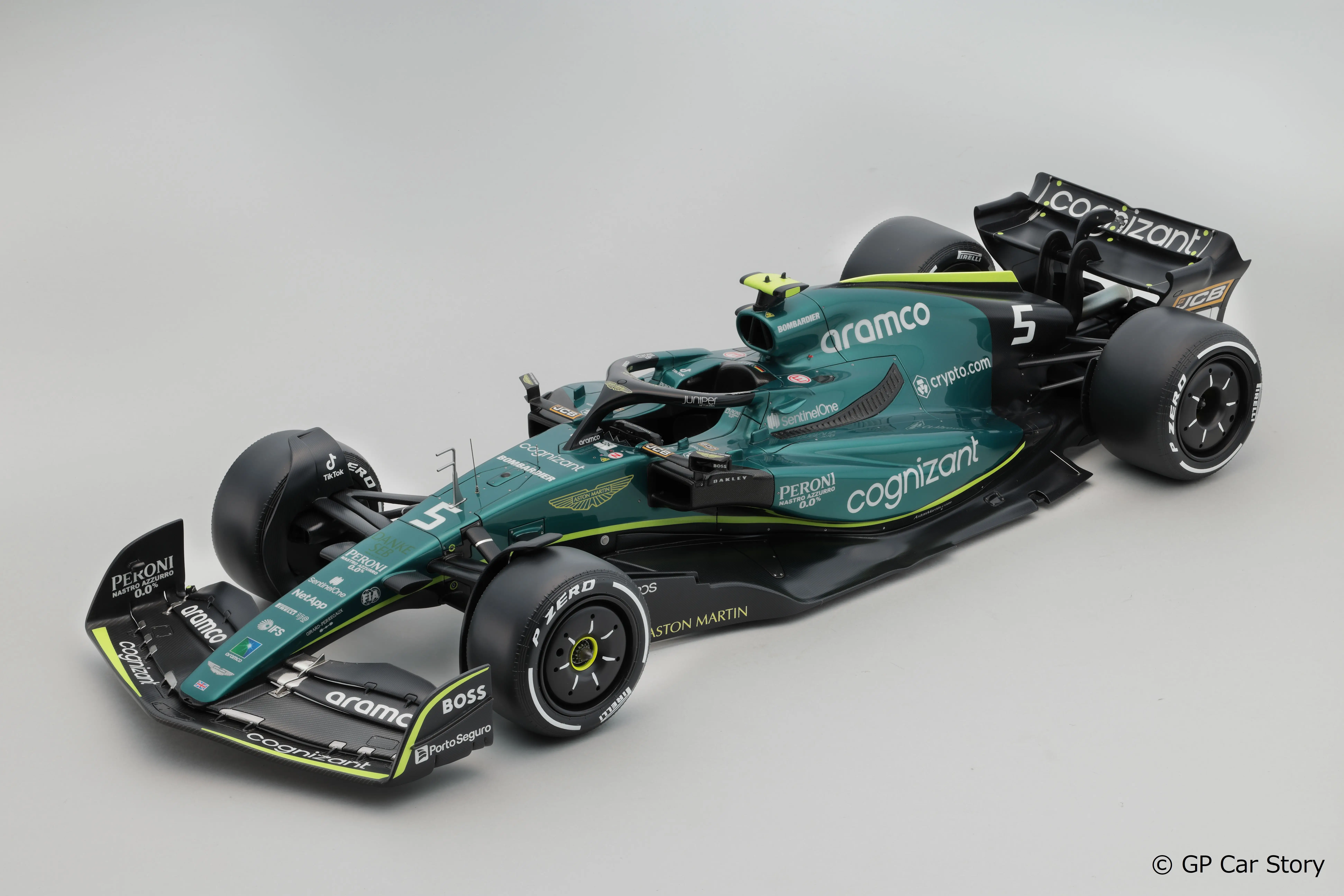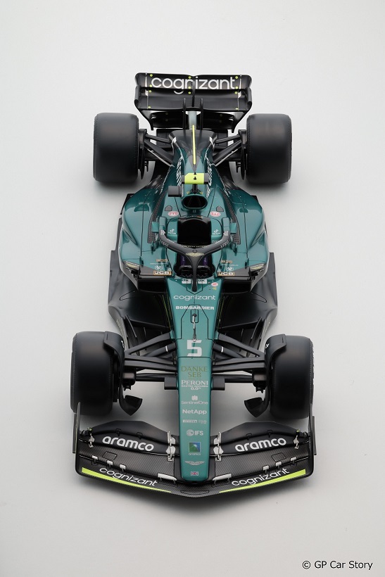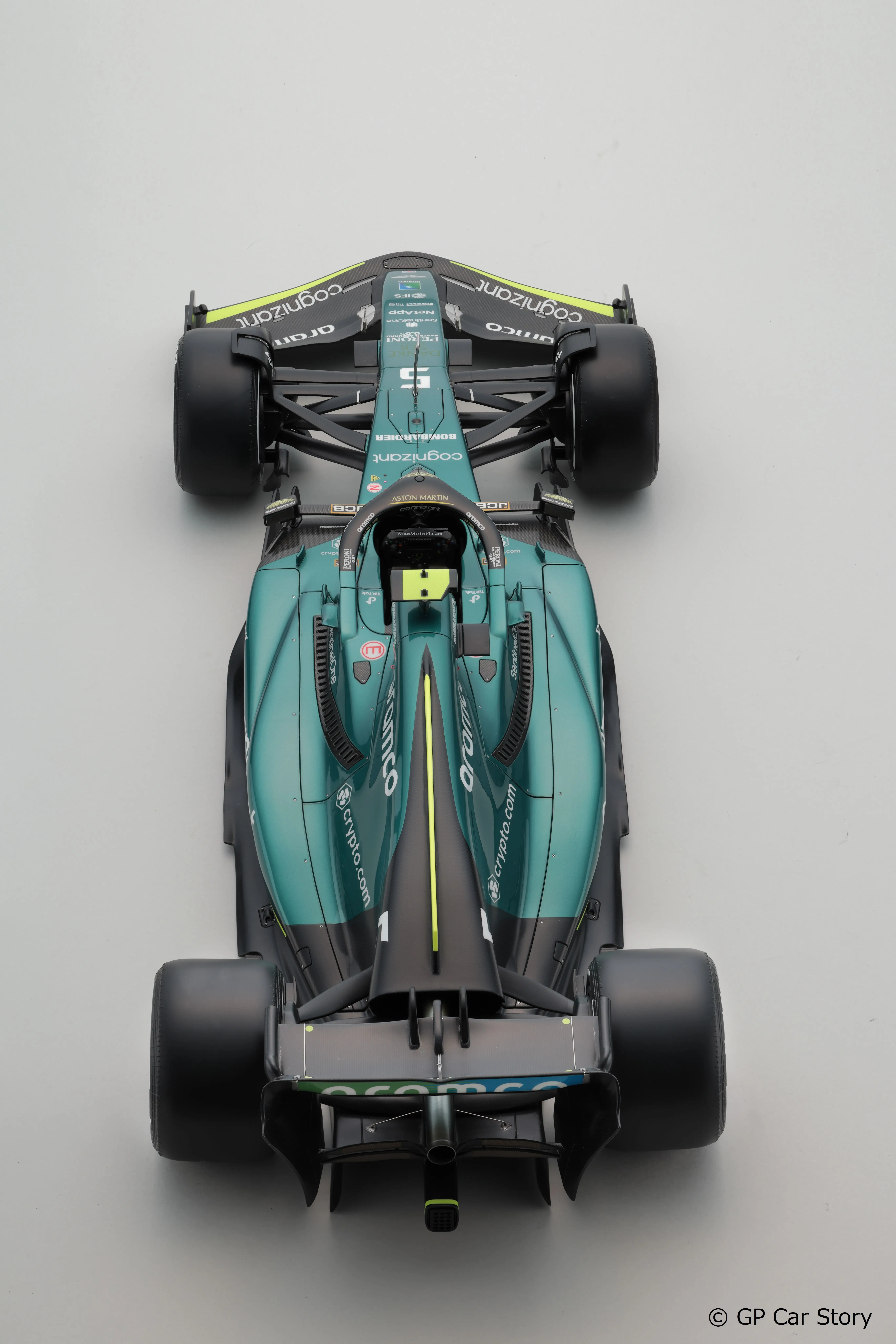 1/12スケールです。2023年のホビーフォーラムでのベッテル引退記念展示のために製作したものです。画像はGP Car Story掲載作品を撮影する際にスタジオで一緒に撮影して頂いたものですが、さすがプロの技術は違いますね。焦点をズラしながら何枚か撮影し、それを専用ソフトで組み合わせて全体にピントの合った画像を作る様です。ここまで高画質高精細だと粗が隠しきれないですが、丁寧に納得いくまで手をかけて製作しましたので是非ご覧ください。製作記はブログの方をご覧ください。