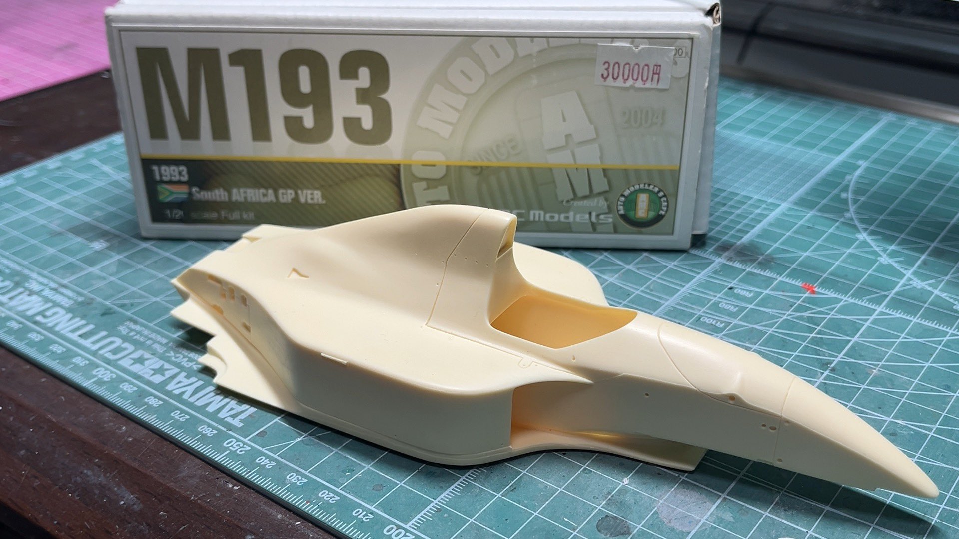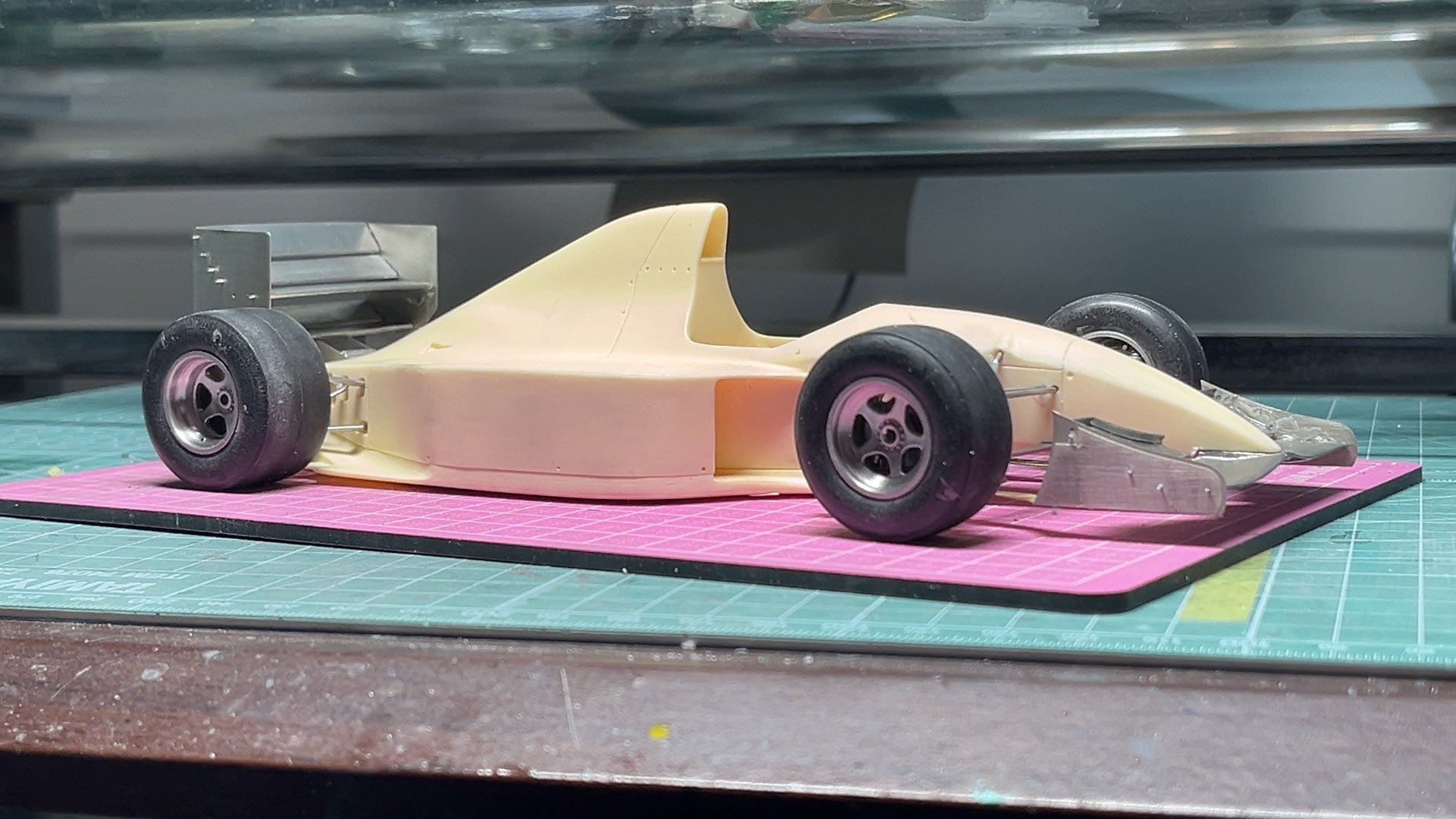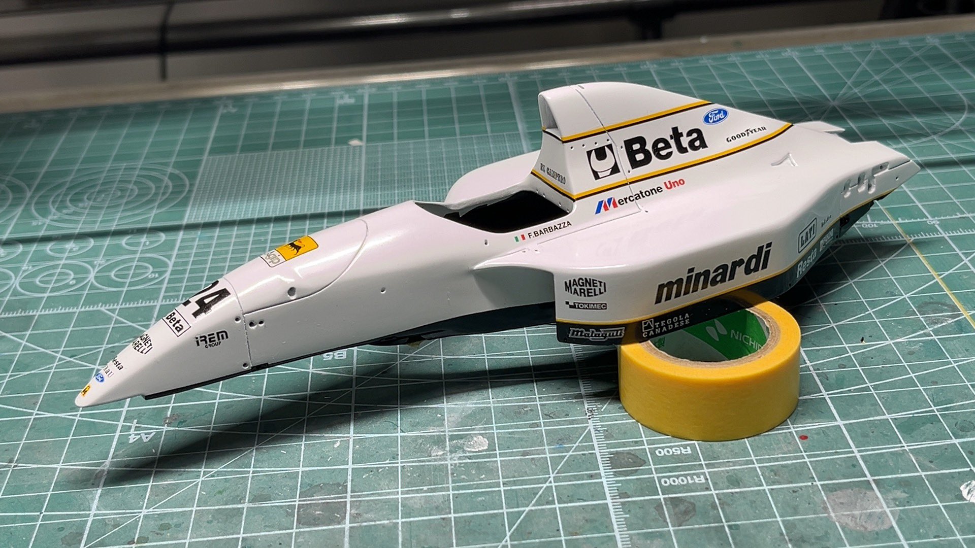 W16のクリア乾燥中にAMCのミナルディM193に手を付けてます。AMCはやはりスタイリングよい。