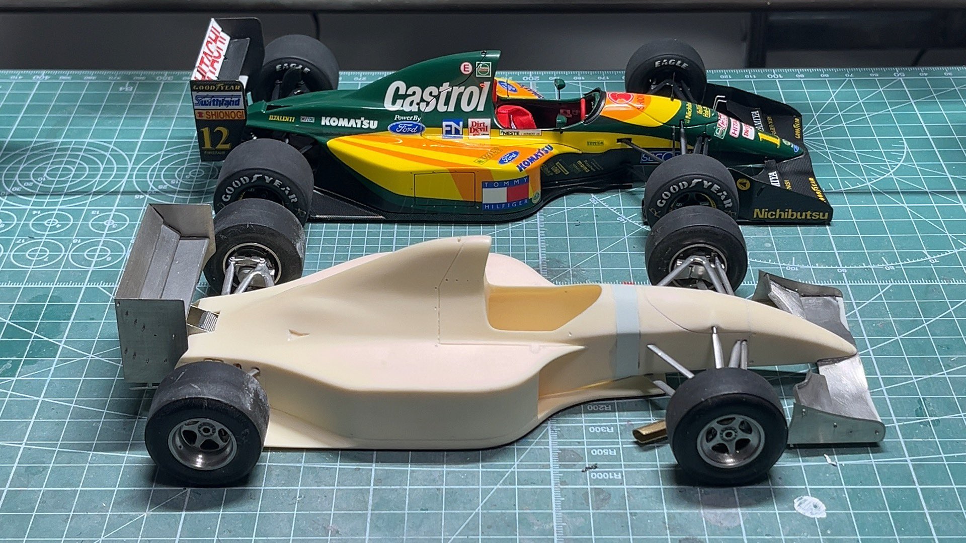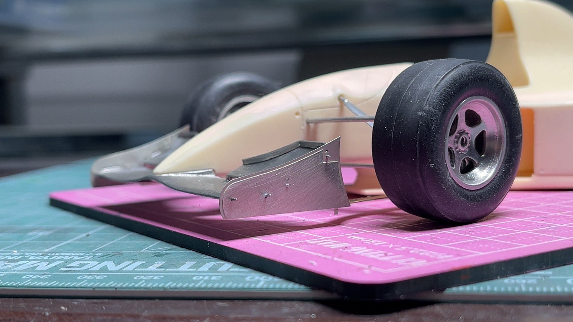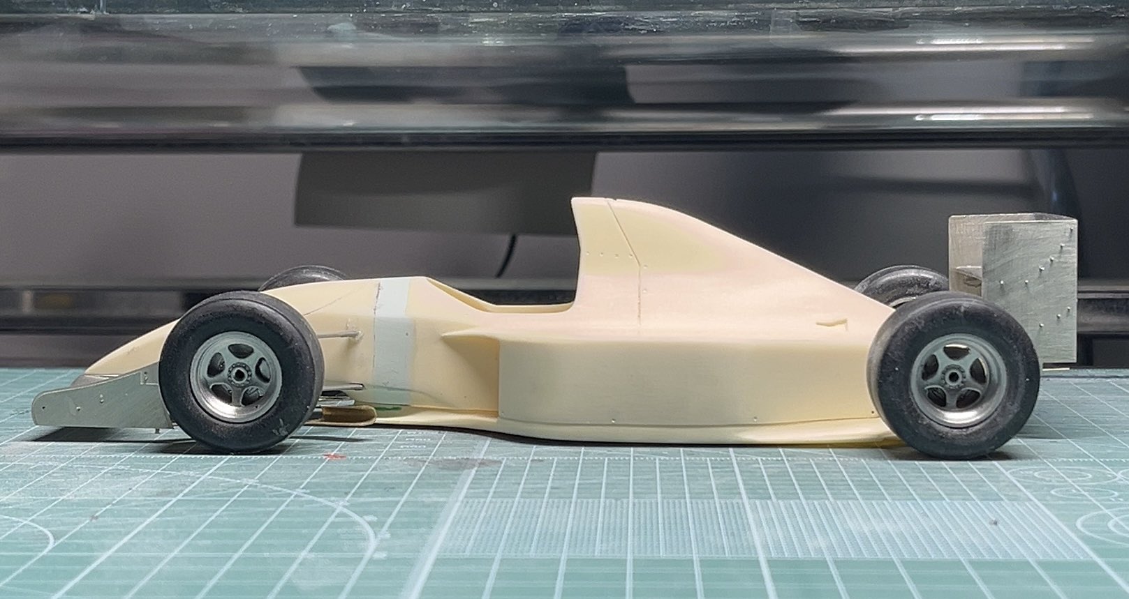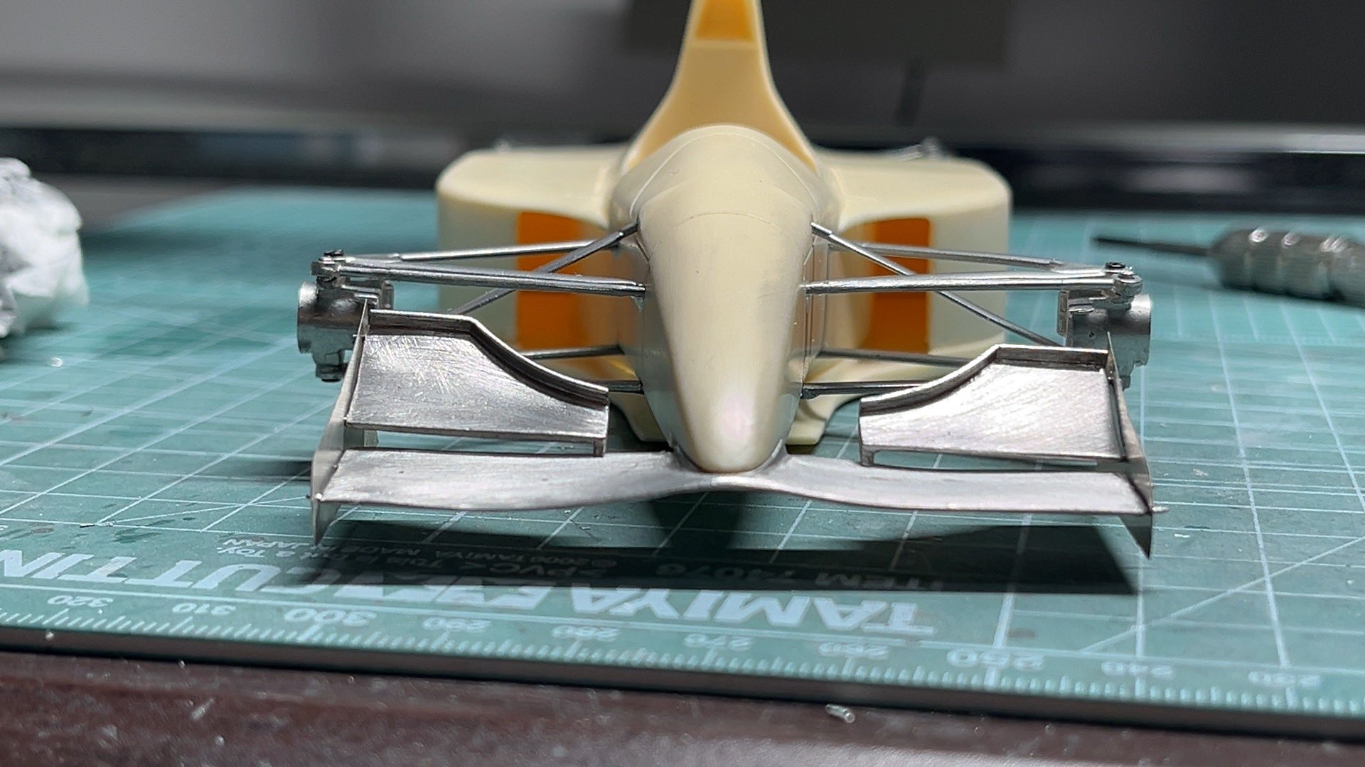 W16のクリア乾燥中にAMCのミナルディM193に手を付けてます。AMCはやはりスタイリングよい。
