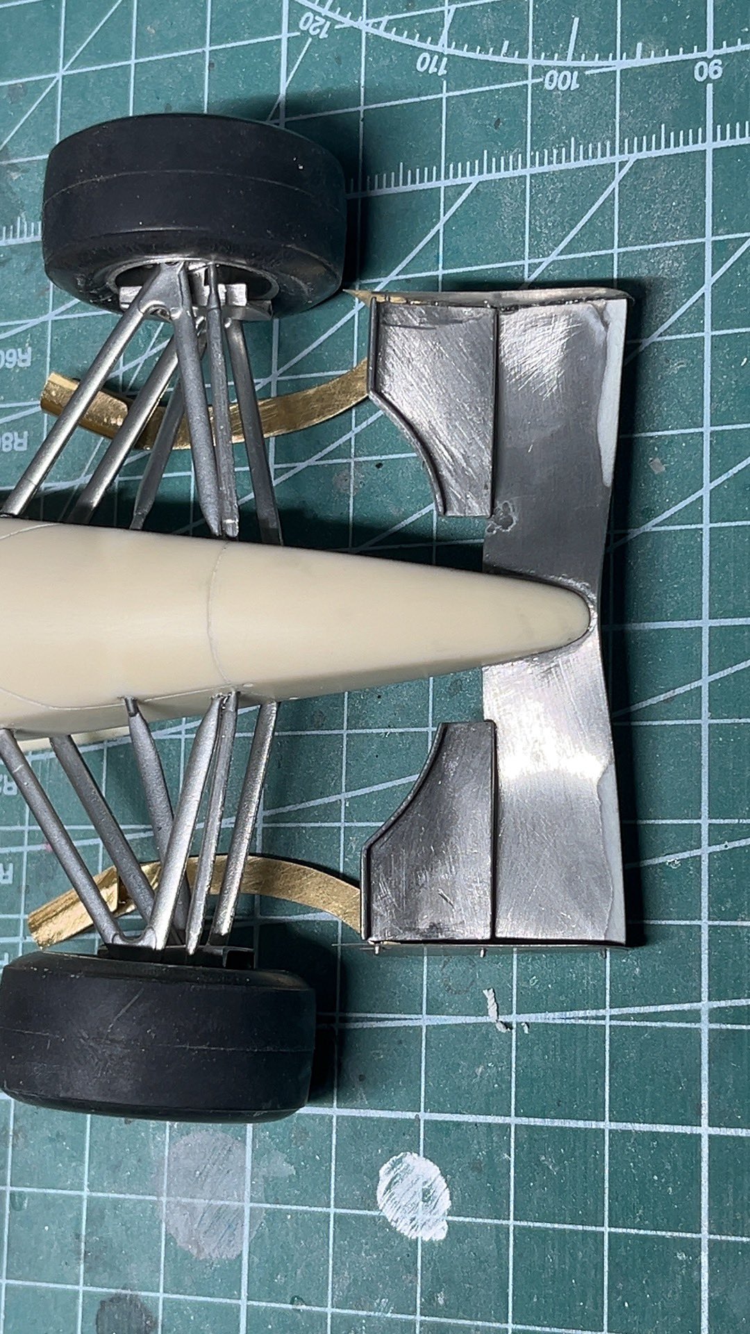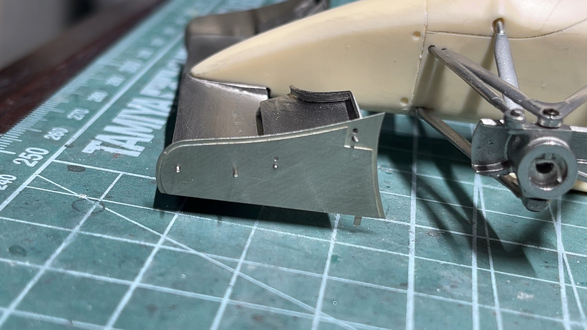 Fウィングのボルテックスジェネレータを真鍮板で作り直しました。キットは極厚メタルでなの、形状修正含めて軽く薄くできました。