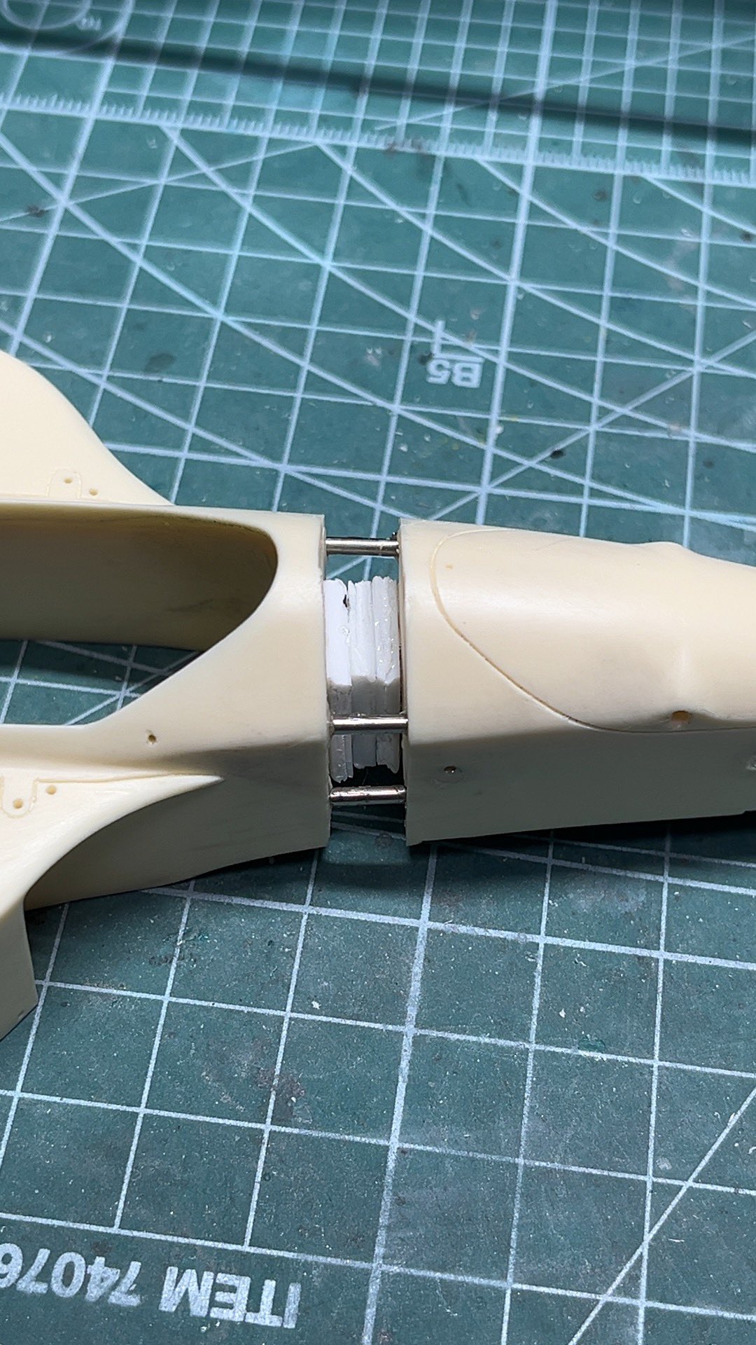 5mn延長なので、切った部分を加味して2mmプラ板3枚挟みます。隙間はUVレジンを流し込み、エポパテで埋めます