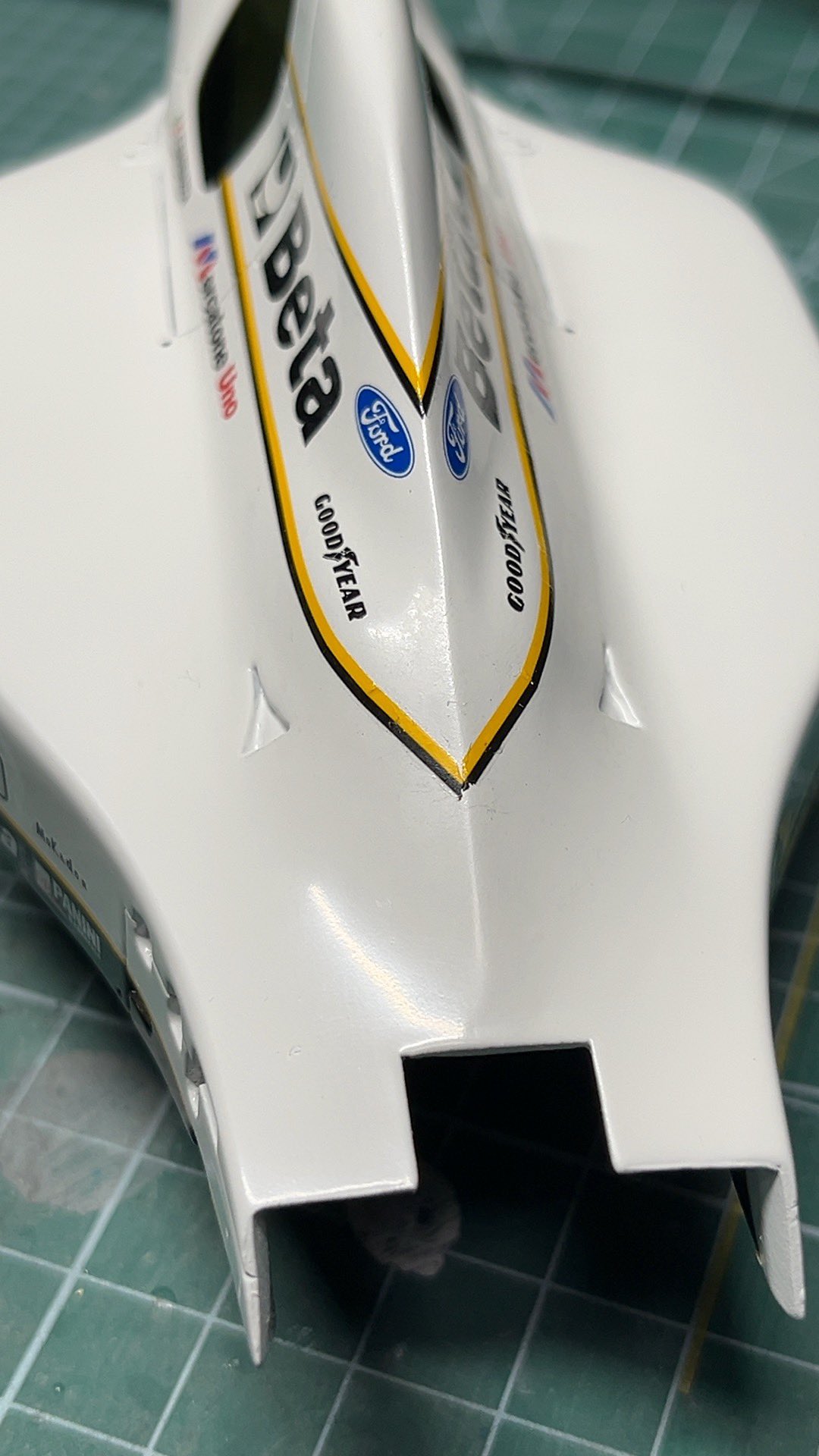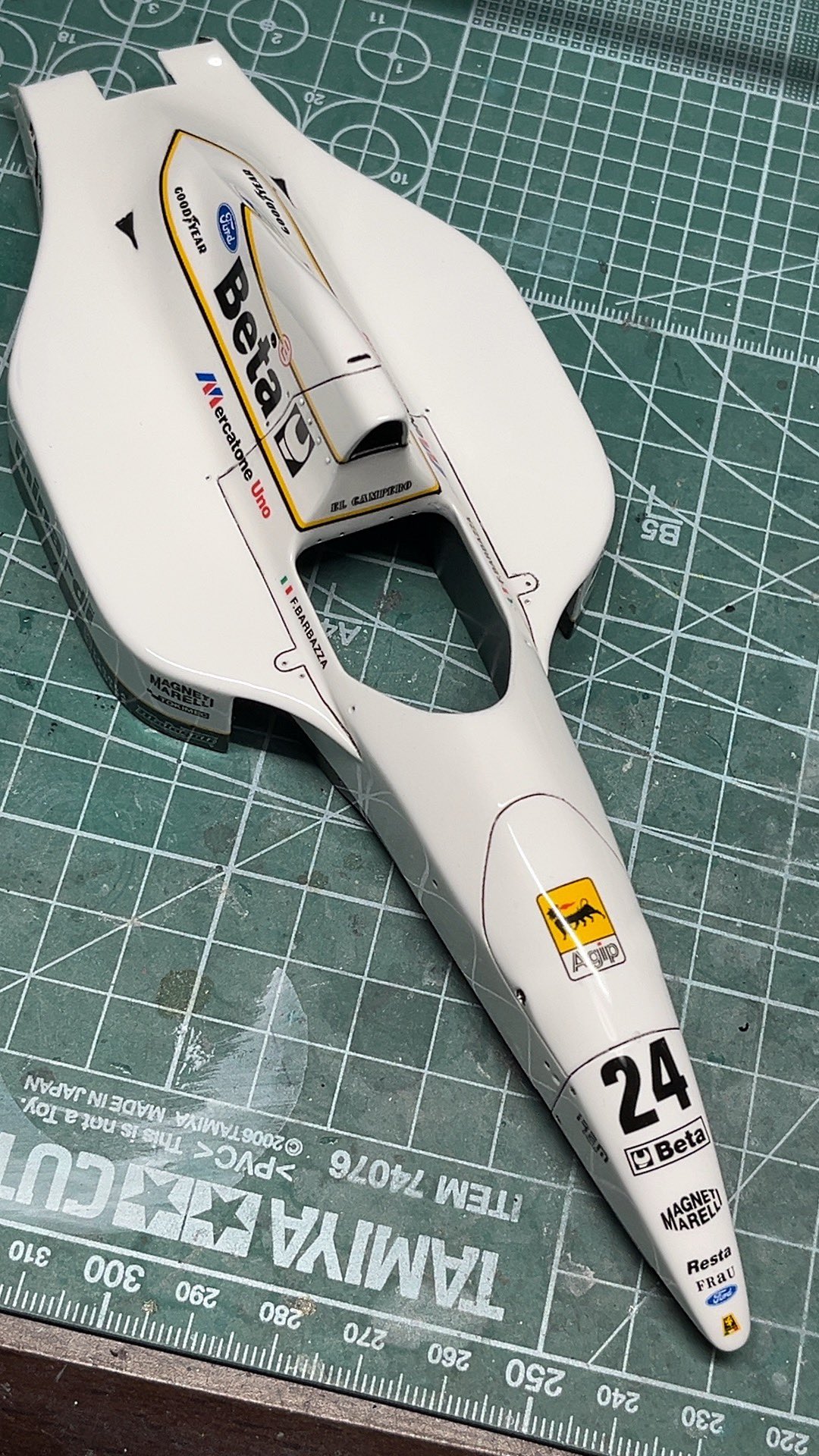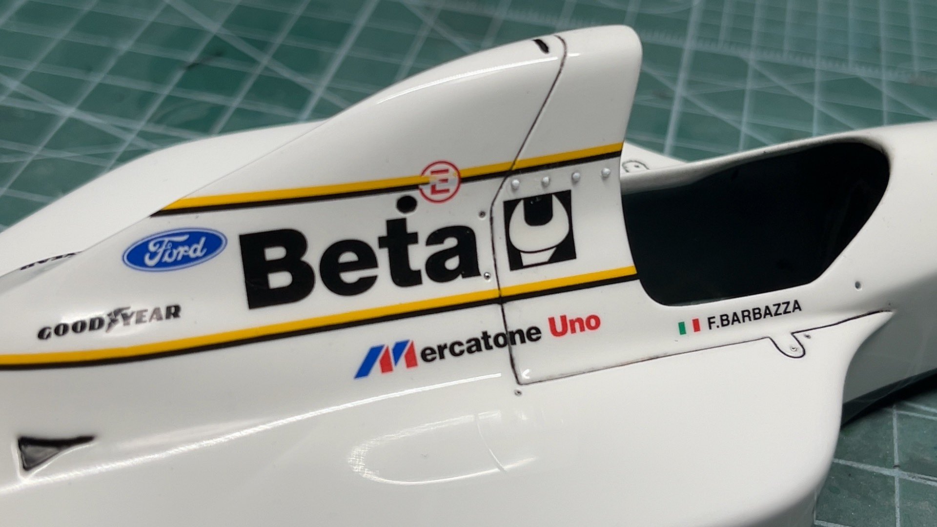 黒黄色のラインデカールを曲げるのに一苦労。ちょっと失敗したかなあ。うーん、白いミナルディもいいじゃん。