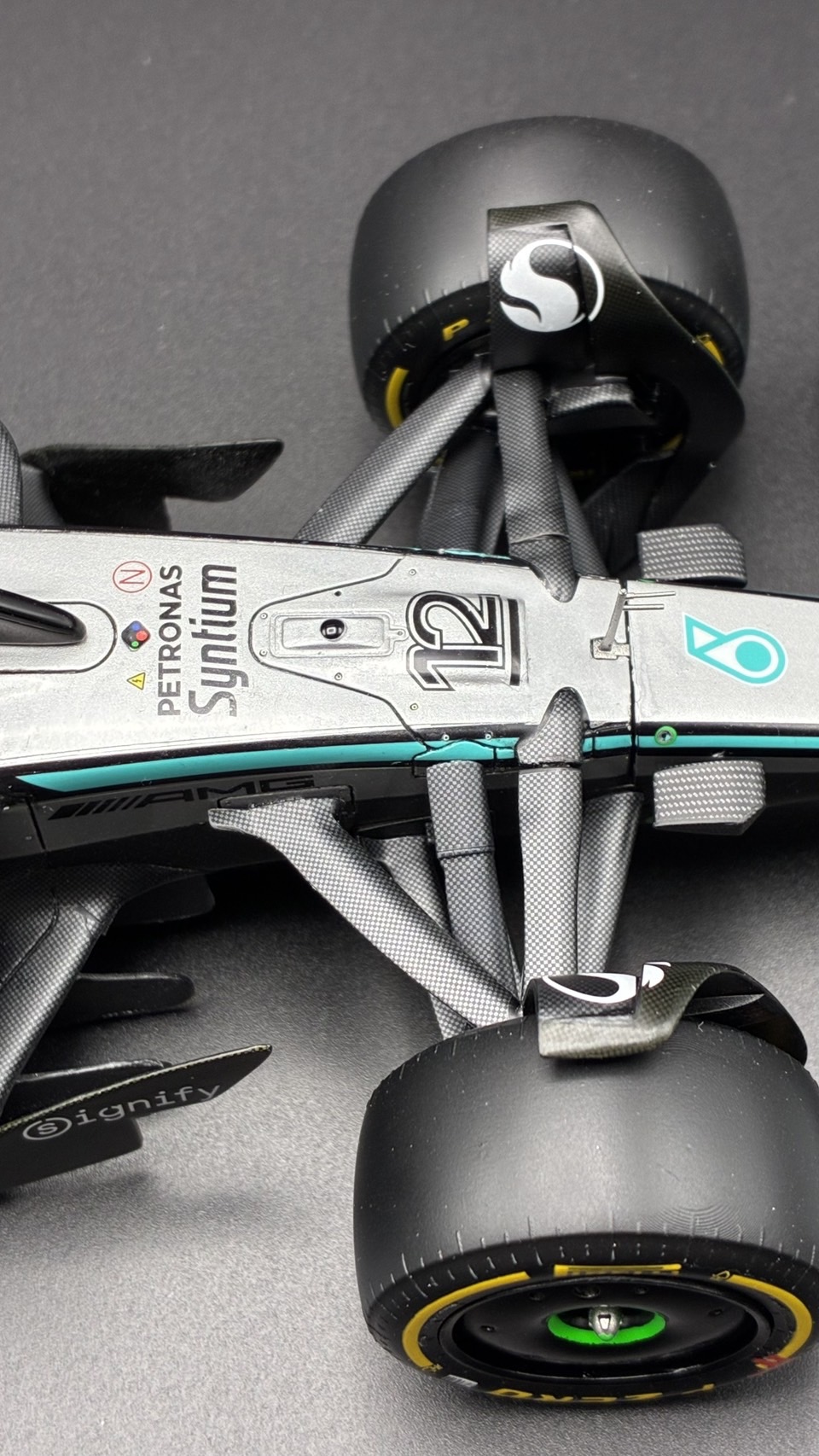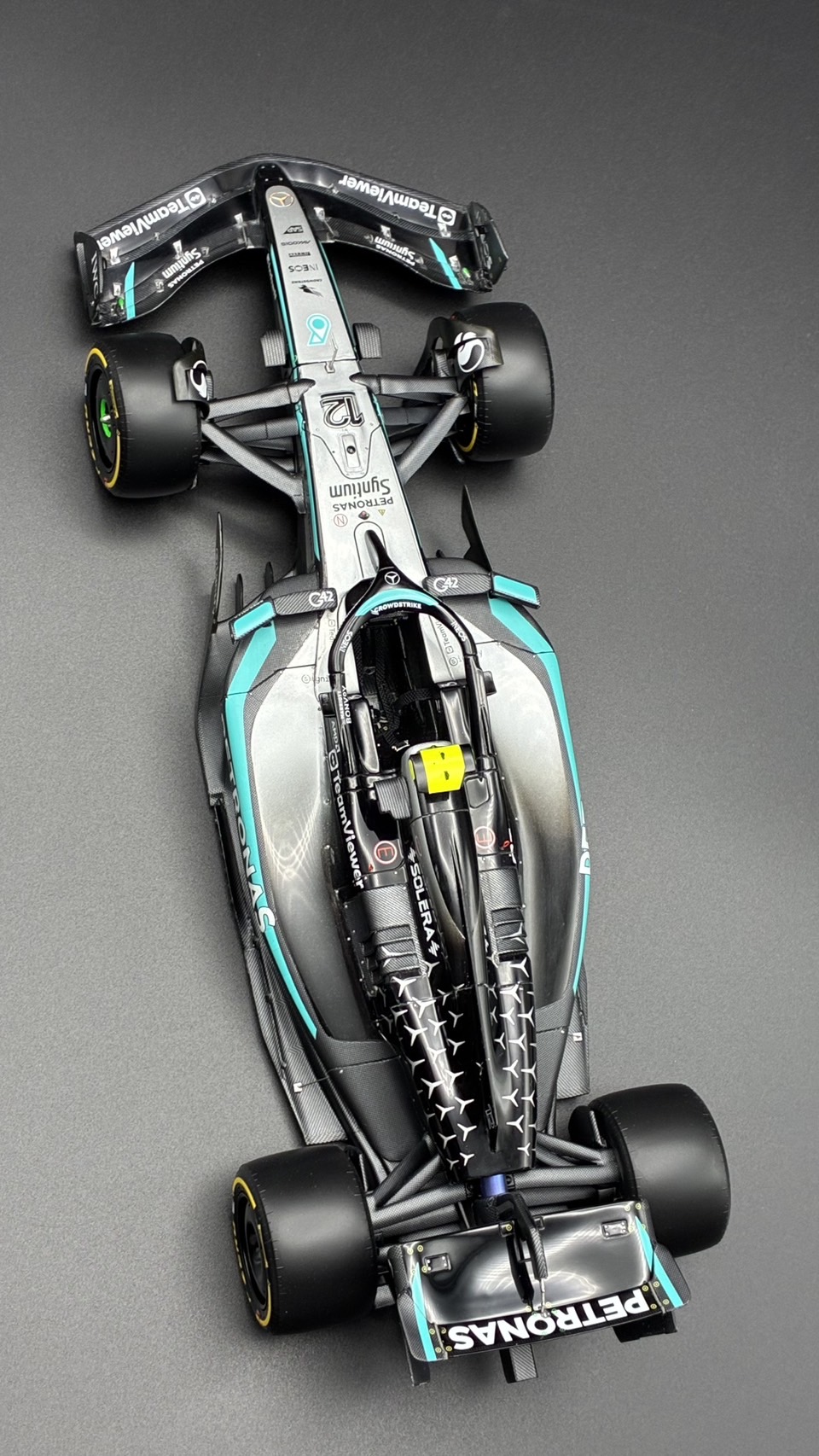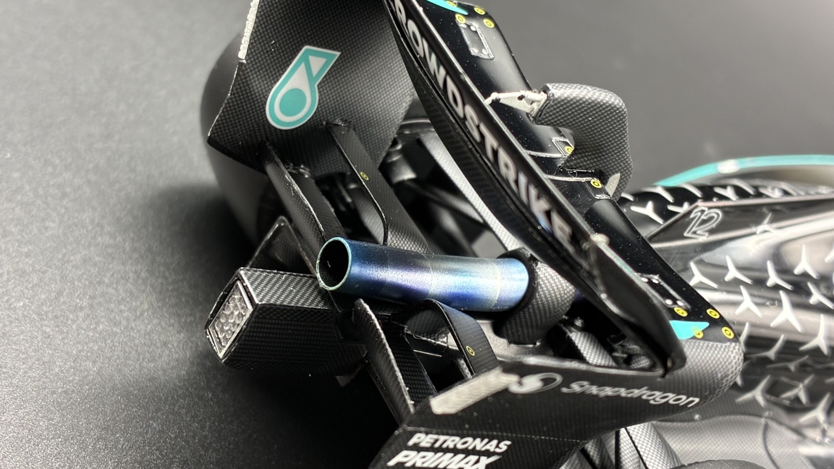 メルセデスW16、完成しました!シルバー、グラデはデカールより塗装が絶対良い事を痛感しました。キットですが、レジンの質が変わって割れにくくなりましたが、その分熱で簡単に変形してしまいます。乾燥機は気をつけたほうが良さそう。